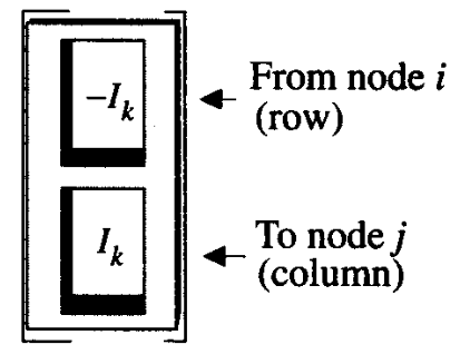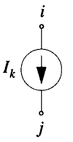 For a independent current source connecting from node \(i\) to node \(j\), it will give the matrix stamps in current vector