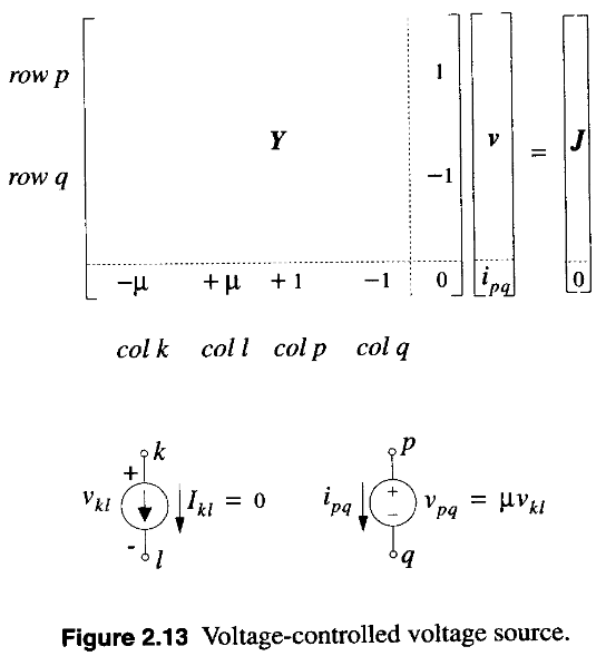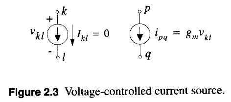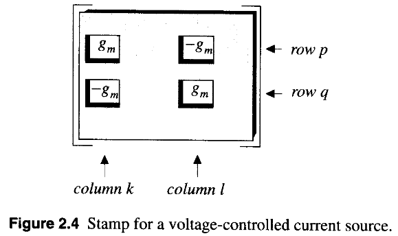 Voltage-controlled current source is a four-terminal element. It will give matrix stamp in \(Y\) matrix.