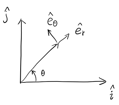 \[\text{if } \vert R(t)\vert \text{ is constant}, \vec{R}(t) \cdot \vec{R}'(t) = 0\]Polar Coordinates