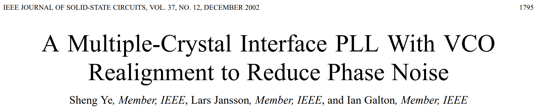 Paper A multiple-crystal interface PLL with VCO realignment to reduce phase noise